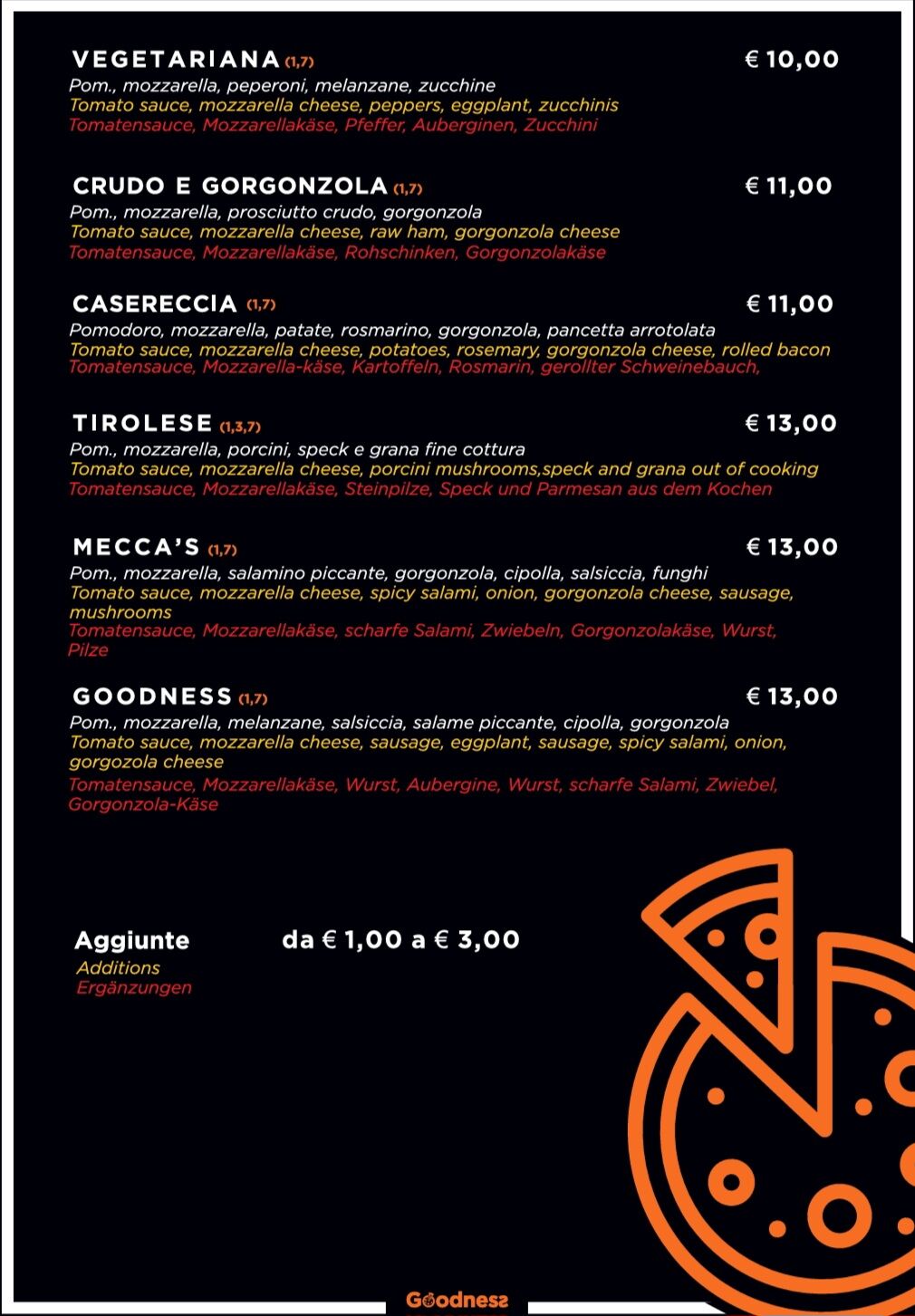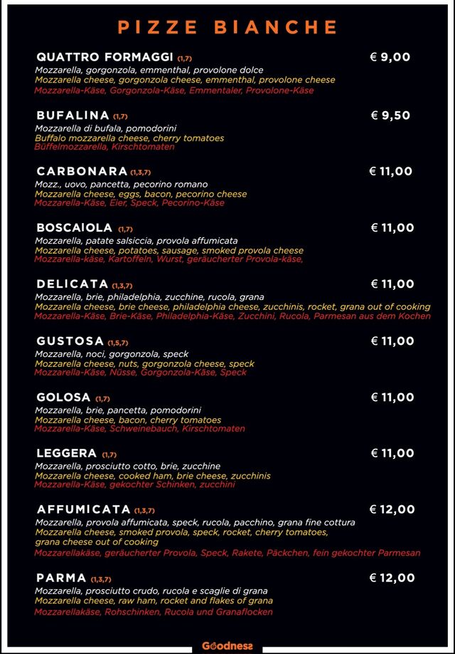 Oltre alle classiche Margherita e Quattro Formaggi, proponiamo una vasta scelta di pizze vegetariane e speciali. Dai un’occhiata al nostro menu per scoprire tutte le deliziose opzioni.
